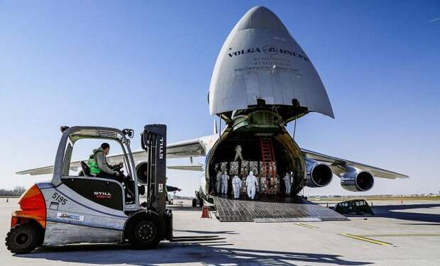 Как сообщает польское издание Defence24, в Варшаве приземлился российский транспортный самолет Ан-124 «Руслан» с грузом китайской медицинской помощи. На его борту в Польшу было перевезено за один раз 7 миллионов медицинских масок и 70 000 защитных костюмов для врачей.